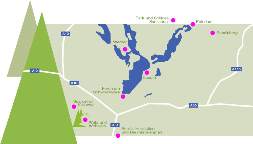 in 45 Minuten zu den Fläming-Skate-Routen, ein 230 km durch Wald und Wiesen verlaufendes Skaterparadies.
